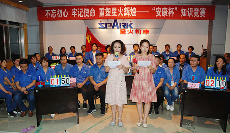 7月15日晚上的首場預賽開始前,星火機床公司黨委副書記、星火機床集團公司副總經(jīng)理、工會主席蔣俊講話指出,這次知識競賽圍繞“不忘初心、牢記使命”主題教育活動,和“安康杯”競賽活動開展的競賽活動,內(nèi)容涉及黨建知識、安全生產(chǎn)知識、企業(yè)發(fā)展和管理知識,這是公司通過開展形式多樣的活動,倡導全體員工大興學習之風的一項具體舉措。希望通過這些活動,統(tǒng)一思想,鼓舞士氣,振奮精神,群策群力,共同努力,把星火的事情辦好。希望通過這樣的活動發(fā)現(xiàn)人才、鍛煉人才,使人才脫穎而出,祝愿每個參賽隊和參賽隊員取得優(yōu)異成績。