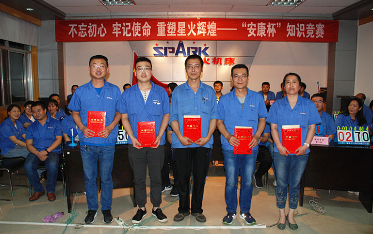 星火機床集團及星火機床公司領導蔣保權(quán)、蔣俊、趙錦銘、劉生玉分別為獲獎隊頒獎。至此,為期一周、經(jīng)過四場預賽的不忘初心、牢記使命、重塑星火輝煌“安康杯”知識競賽圓滿落幕。
