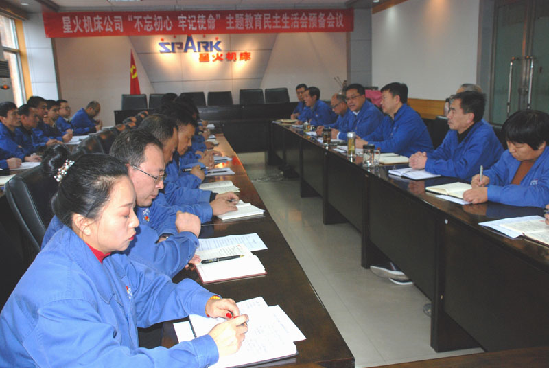 11月16日,星火機床公司利用周六休息時間在大會議室召開“不忘初心、牢記使命”主題教育民主生活會預(yù)備會。黨委書記、星火機床集團公司董事長蔣保權(quán)認(rèn)真檢視個人在工作方面的不足,對分管的部門及其主要負責(zé)人,對每一位中層干部工作進行點評,提出中肯的意見及建議;星火機床集團及星火機床公司領(lǐng)導(dǎo)蔣保權(quán)、劉勝、蔣俊、趙錦銘、鞠家兵、劉生玉、劉強、展海瑜、胡慶峰、楊克祥分別對各自分管的部門及主要負責(zé)人的工作進行點評,提出建議和意見;各部門一把手分別總結(jié)了個人工作中存在的不足,對班子及班子成員提出了建議和意見。會議由黨委副書記、星火機床集團公司副總經(jīng)理蔣俊主持。