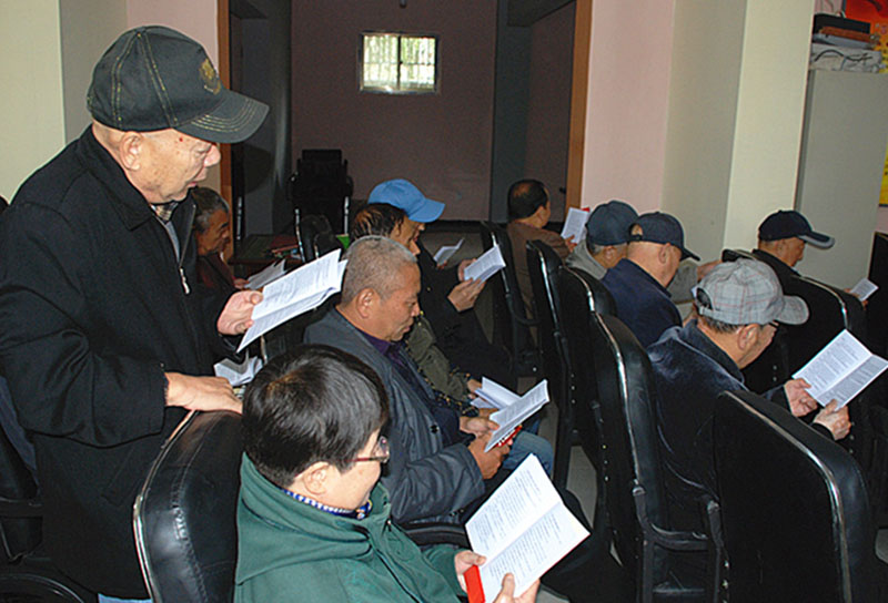 答題采取提問(wèn)搶答的方式進(jìn)行,老黨員積極踴躍舉手搶答,現(xiàn)場(chǎng)氣氛熱烈。