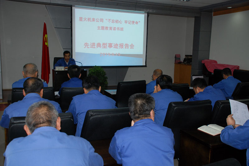 按照《中共天水市委關(guān)于開展“不忘初心 牢記使命”主題教育的實施方案》要求,星火機(jī)床公司自9月16日開始的為期一周的主題教育讀書班各項學(xué)習(xí)活動正在如火如荼的開展。按照學(xué)習(xí)計劃,每天上午、下午,星火機(jī)床公司 “不忘初心 牢記使命”主題教育讀書班定時開展形式多樣的學(xué)習(xí)活動。自9月17日、9月18日組織讀書班成員觀看警示教育片、《建國大業(yè)》革命傳統(tǒng)教育專題片后,9月19日上午,星火機(jī)床公司“不忘初心 牢記使命”主題教育讀書班在大會議室舉辦了先進(jìn)典型事跡報告會。