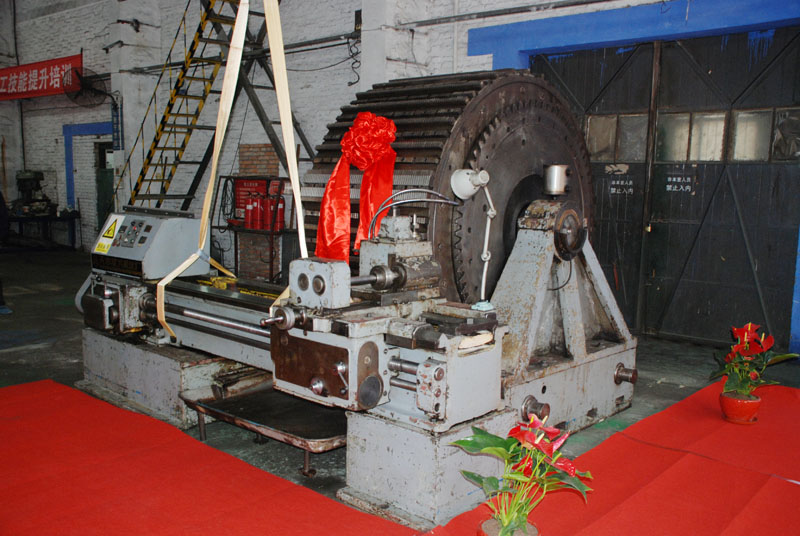 4月14日上午,星火機(jī)床機(jī)械制造公司精密大修車間氣氛隆重而熱烈,星火機(jī)床公司工業(yè)遺產(chǎn)老舊設(shè)備捐贈(zèng)儀式在這里舉行。捐贈(zèng)現(xiàn)場的大紅地毯上, 星火機(jī)床公司1973年生產(chǎn)的產(chǎn)品TX-1001牙條車床身披鮮艷的紅花,象一位待嫁的“新娘”,等待她的“婆家”天水市工業(yè)博物館 “迎娶”回家。