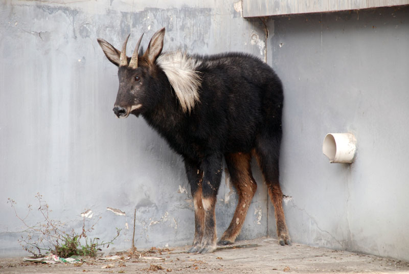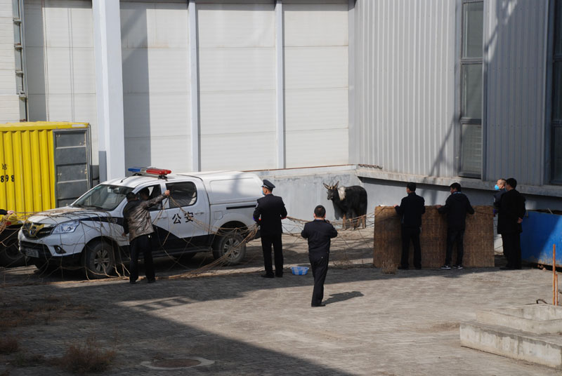 得知情況后,星火機(jī)床公司立即報(bào)告相關(guān)管理部門。甘肅省小隴山林區(qū)森林公安局接警后,派森林警察迅速來到星火工業(yè)園。經(jīng)確認(rèn),他們決定將其送往附近的林區(qū)??墒?,由于天已黑,鬣羚產(chǎn)生了恐慌情緒,出現(xiàn)了攻擊人的行為。出于安全考慮,他們只好決定第二天再采取行動(dòng)。為了做到既不傷害人,又能夠保護(hù)野生動(dòng)物,星火機(jī)床公司安排人將鬣羚引導(dǎo)到兩個(gè)分廠之間的空地,關(guān)閉了前后大門,為其準(zhǔn)備了水和草料,將其妥善安置。