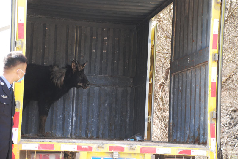 3月18日上午,甘肅省小隴山林區(qū)森林公安局會(huì)同天水市森林公安局麥積分局及麥積區(qū)林草局相關(guān)人員來到星火機(jī)床公司工業(yè)園,經(jīng)反復(fù)研究,確定了捕捉方案。由于鬣羚體積大、爆發(fā)力強(qiáng),致使人無法靠近,抓獲過程比較困難。后經(jīng)近一個(gè)小時(shí)的努力,最終在星火機(jī)床公司全力配合下,費(fèi)盡幾番周折,終于將“倔強(qiáng)”的鬣羚裝上了車。在充分考慮生存環(huán)境的適應(yīng)性后,森林警察將鬣羚放歸到了遠(yuǎn)離人群的麥積區(qū)草灘村管嶺溝附近的山林。