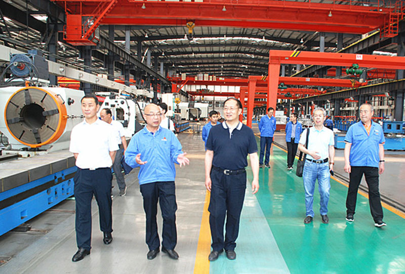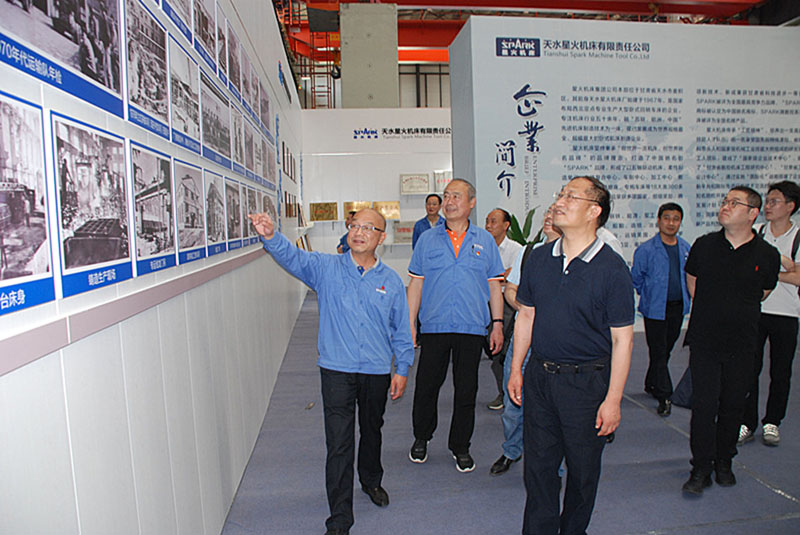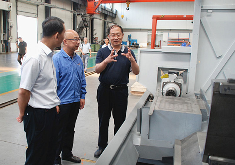 星火機(jī)床公司領(lǐng)導(dǎo)蔣俊、趙錦銘、鞠家兵、劉生玉陪同參觀生產(chǎn)現(xiàn)場。