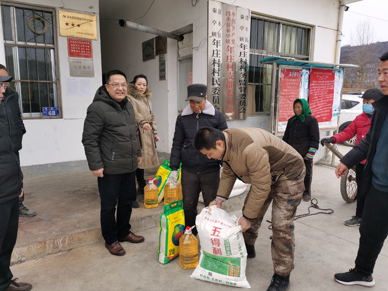 清水縣秦亭鎮(zhèn)年莊村是星火機(jī)床公司“雙包雙促”精準(zhǔn)扶貧定點(diǎn)村,自幫扶工作開展以來,公司領(lǐng)導(dǎo)非常重視對(duì)該村困難群眾的幫扶工作,千方百計(jì)籌錢籌物,修建廣場(chǎng)文化墻、購買運(yùn)送村道景觀樹苗、幫助學(xué)校硬化操場(chǎng),修建便橋護(hù)欄,修建乘車涼亭等,解決群眾衣食住行方面遇到的煩心事。星火機(jī)床公司領(lǐng)導(dǎo)心系幫扶村困難群眾,經(jīng)常深入困難群眾家庭,開展走訪慰問,一來二往,星火機(jī)床公司和幫扶村群眾的感情逐漸加深。春節(jié)臨近,星火機(jī)床公司領(lǐng)導(dǎo)雖然工作千頭萬緒,但依然不忘困難群眾,利用周六休息時(shí)間,帶領(lǐng)公