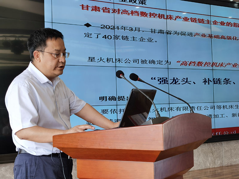高端數(shù)控機(jī)床鏈主企業(yè)——星火機(jī)床集團(tuán)公司黨委書記、董事長蔣保權(quán)在會(huì)上發(fā)言,介紹了企業(yè)基本情況、行業(yè)情況、企業(yè)“十四五”規(guī)劃、企業(yè)配套需求、產(chǎn)業(yè)發(fā)展規(guī)劃等。