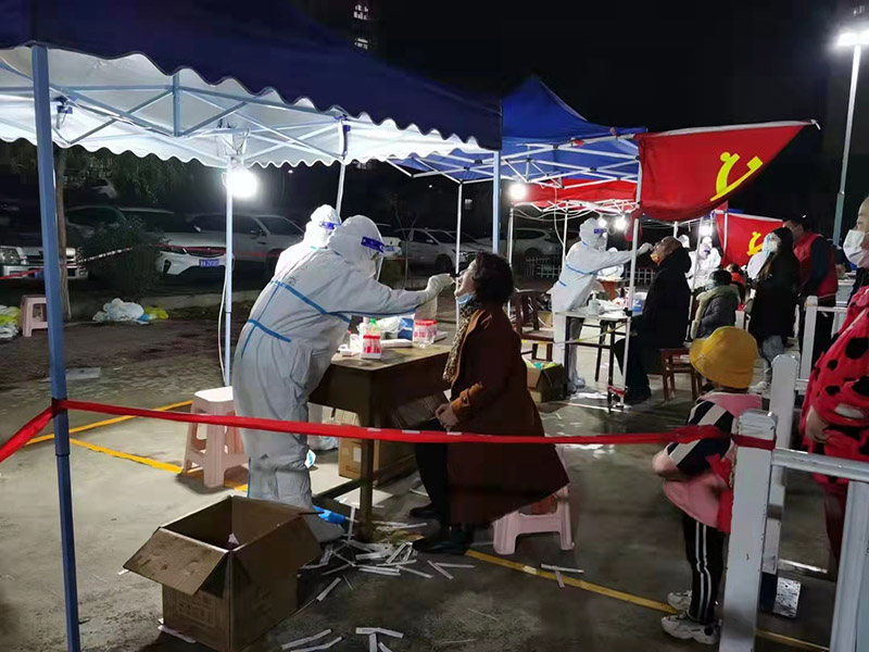 附件公司黨員職工組成抗疫突擊隊(duì),為“黃碼”人員進(jìn)行核酸檢測清掃環(huán)境、搭帳篷、擺桌子,保障照明,維持秩序。