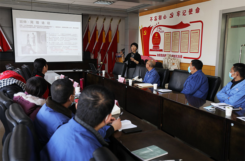 彭建霞律師對《中華人民共和國民法典》中婚姻家庭生活涉及的彩禮、遺囑方面有關(guān)法律知識向大家做了宣講。她通過講述故事、分析案例的方式,在與大家的互動中深入淺出的進行了法律知識宣貫,受到了活動現(xiàn)場職工的高度贊賞。