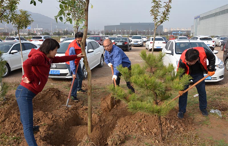在“3.12”植樹節(jié)前后,星火機(jī)床公司組織鑄造、機(jī)械制造、機(jī)床裝備、機(jī)關(guān)、研銷、后勤等黨支部黨員干部職工70多人,開展了以“植樹播綠 美化環(huán)境”為主題的義務(wù)植樹活動。此次活動旨在增強(qiáng)企業(yè)員工的植綠護(hù)綠意識,引導(dǎo)大家做綠色家園的建設(shè)者、護(hù)衛(wèi)者。與往年不同的是,今年在兼顧觀賞性的同時(shí),按照既“綠化”又“美化”的要求,物業(yè)公司特從陜西扶風(fēng)苗木基地精挑細(xì)選了500株具有觀賞價(jià)值的紅葉李、大葉女貞樹種,為星火工業(yè)園區(qū)廠房周邊添植了新綠。