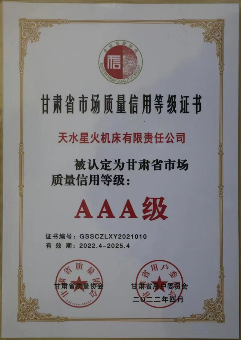 星火機(jī)床公司被認(rèn)定為AAA級用戶滿意標(biāo)桿企業(yè)。
