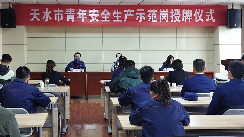 4月27日,團(tuán)市委、市應(yīng)急管理局舉行天水市青年安全生產(chǎn)示范崗授牌儀式,受表彰的8個(gè)單位的團(tuán)委書(shū)記等30余人參加會(huì)議。