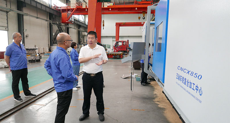 陳海龍一行參觀了公司研發(fā)生產(chǎn)的各類機(jī)床產(chǎn)品,認(rèn)真聽取了集團(tuán)公司黨委副書記、副總經(jīng)理蔣俊關(guān)于企業(yè)發(fā)展歷程、技術(shù)研發(fā)能力、生產(chǎn)經(jīng)營(yíng)情況、市場(chǎng)前景、項(xiàng)目建設(shè)進(jìn)展及公司“十四五”發(fā)展規(guī)劃等情況介紹,詳細(xì)詢問了企業(yè)上半年生產(chǎn)經(jīng)營(yíng)工作,特別是企業(yè)目前存在的主要困難和問題。