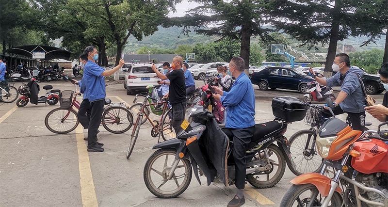早上7點鐘,星火家園門口。公司各單位負(fù)責(zé)人已紛紛到崗,配合門衛(wèi)和社區(qū)工作人員,確認(rèn)上班職工,為職工家屬及住戶發(fā)放出入證。