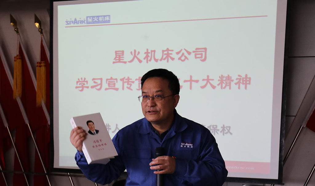 11月25日,星火機床公司黨委組織中層以上干部、黨支部書記、分會主席、青年骨干職工集體學(xué)習(xí)黨的二十大精神。集團公司黨委書記、董事長蔣保權(quán)結(jié)合習(xí)近平治國理政思想就堅持中國共產(chǎn)黨的領(lǐng)導(dǎo)、堅持人民至上、保持高昂的斗爭精神和堅定不移走高質(zhì)量發(fā)展之路等方面內(nèi)容講專題黨課。