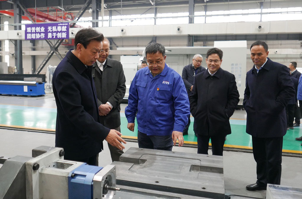 2月27日,陳得信副省長一行到星火機(jī)床公司調(diào)研企業(yè)生產(chǎn)經(jīng)營、科技創(chuàng)新、項(xiàng)目建設(shè)等情況。省政府副秘書長王振清,省科技廳廳長張世榮,省工信廳廳長盛云峰,天水市委副書記、市長王國先,副市長胡志勇等人陪同調(diào)研。