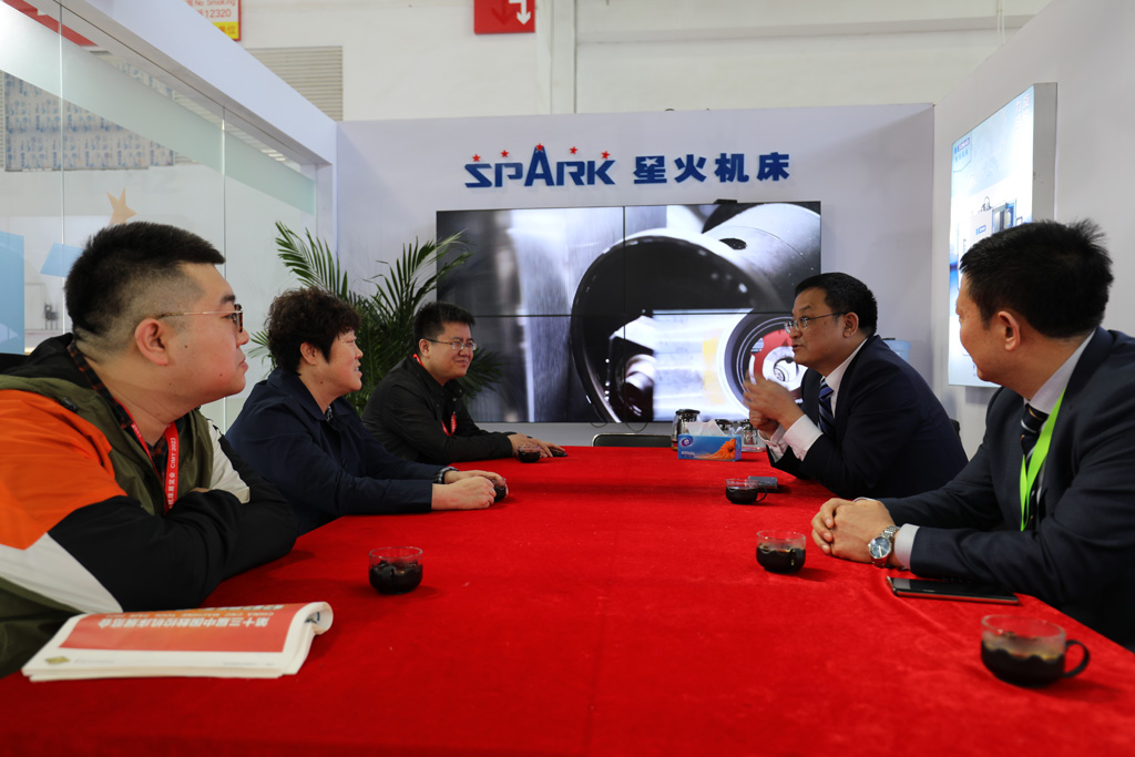 座談中,蔣保權(quán)向王文秀詳細(xì)介紹了公司展品的突出優(yōu)勢(shì)和火爆的參展效果,分析了目前機(jī)床行業(yè)發(fā)展形勢(shì)。