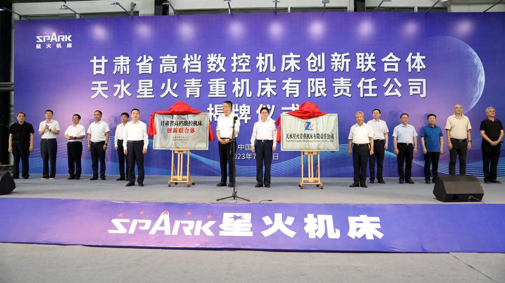 7月29 日,甘肅省高檔數(shù)控機(jī)床創(chuàng)新聯(lián)合體暨天水星火青重機(jī)床有限責(zé)任公司揭牌儀式在星火機(jī)床公司隆重舉行。天水市市委書記馮文戈,甘肅省科技廳副廳長謝正團(tuán)為甘肅省高檔數(shù)控機(jī)床創(chuàng)新聯(lián)合體揭牌。天水市市委副書記、市長王國先,甘肅省工信廳二級(jí)巡視員張忠善為天水星火青重機(jī)床有限責(zé)任公司揭牌。