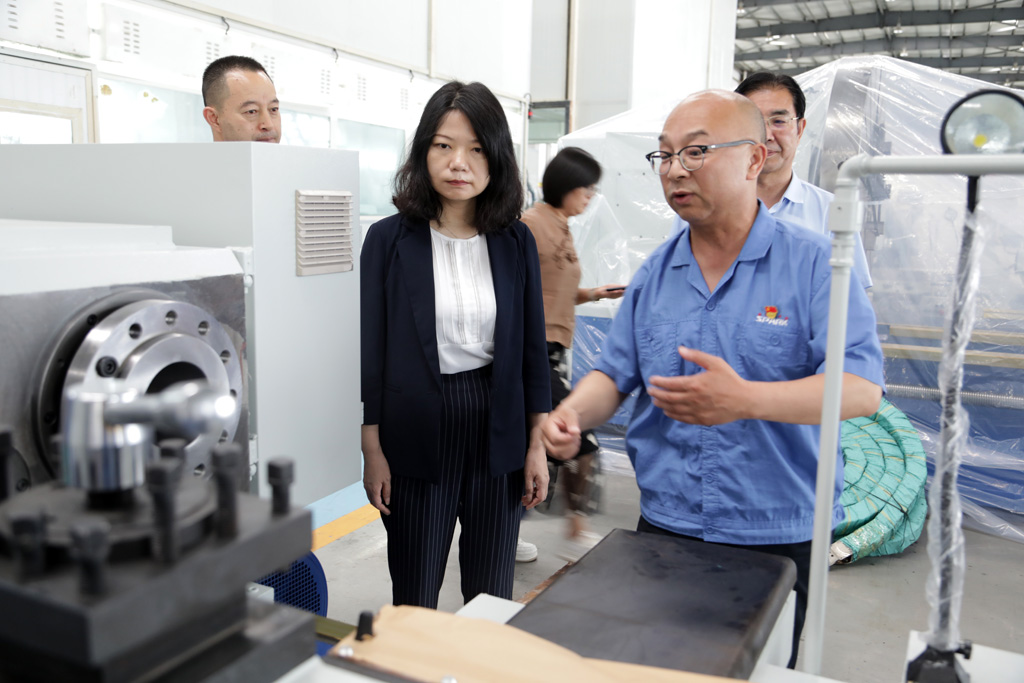 朱音一行聽取了集團公司黨委副書記、副總經(jīng)理蔣俊關(guān)于企業(yè)歷史沿革、生產(chǎn)經(jīng)營、項目建設(shè)、科技創(chuàng)新、產(chǎn)品性能等內(nèi)容的介紹,深入生產(chǎn)現(xiàn)場參觀了公司研發(fā)生產(chǎn)的各類高、精、尖數(shù)控機床產(chǎn)品后進行座談。