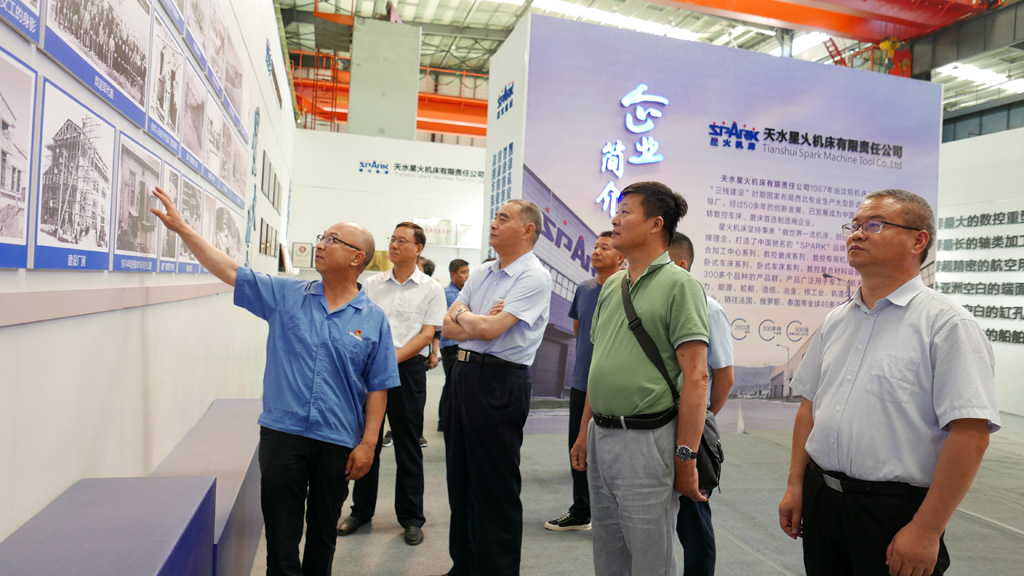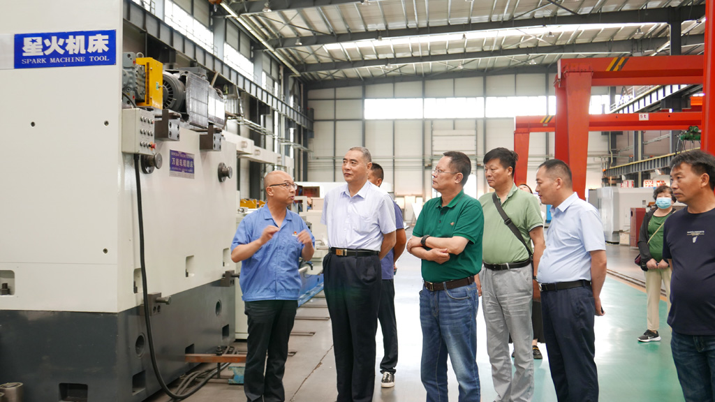 在星火機床公司裝配生產(chǎn)現(xiàn)場,孫昌春一行聽取了集團公司黨委副書記、副總經(jīng)理蔣俊關(guān)于公司生產(chǎn)經(jīng)營、產(chǎn)品研發(fā)、科技創(chuàng)新、項目建設(shè)及未來發(fā)展規(guī)劃等情況介紹,參觀了公司研發(fā)生產(chǎn)的高端數(shù)控纏繞機床、五軸聯(lián)動機床、數(shù)控斜床身機床等產(chǎn)品,詳細(xì)了解了各種產(chǎn)品的應(yīng)用領(lǐng)域及性能特點。