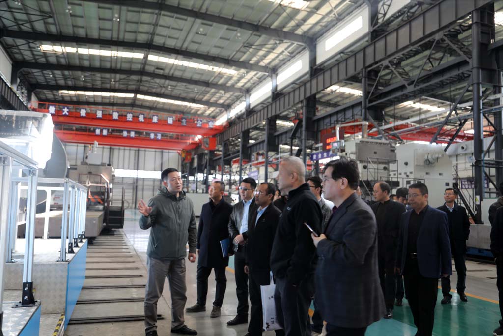 11月6日,甘肅省機(jī)械工程學(xué)會(huì)理事長(zhǎng)韓少平、秘書長(zhǎng)賈德強(qiáng)和參加“2023‘科創(chuàng)中國(guó)’裝備制造業(yè)數(shù)字化轉(zhuǎn)型與高質(zhì)量發(fā)展”論壇的相關(guān)領(lǐng)導(dǎo)專家學(xué)者二十余人來(lái)星火機(jī)床公司調(diào)研,星火機(jī)床集團(tuán)公司黨委副書記、總經(jīng)理劉勝,黨委副書記、副總經(jīng)理蔣俊陪同接待。調(diào)研組詳細(xì)了解了公司自我研制的五軸聯(lián)動(dòng)車銑復(fù)合加工機(jī)床、大型數(shù)控臥式車床、重型機(jī)床、車輪車和專用機(jī)床等高精尖產(chǎn)品的科技創(chuàng)新、應(yīng)用前景及應(yīng)用領(lǐng)域等情況之后,調(diào)研組對(duì)星火機(jī)床公司在技術(shù)創(chuàng)新、市場(chǎng)開拓所作的工作表示肯定。