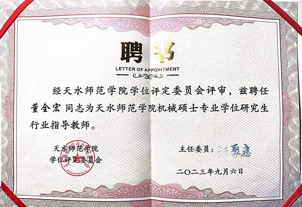 劉勝代表星火機(jī)床公司與天水師范學(xué)院簽署《機(jī)械碩士專(zhuān)業(yè)研究生聯(lián)合培養(yǎng)協(xié)議》,并與天水師范學(xué)院院長(zhǎng)汪聚應(yīng)為星火機(jī)床公司與天水師范學(xué)院“機(jī)械碩士專(zhuān)業(yè)學(xué)位研究生聯(lián)合培養(yǎng)基地”揭牌。星火機(jī)床公司專(zhuān)用機(jī)床總設(shè)計(jì)師董全宏被聘為天水師范學(xué)院機(jī)械專(zhuān)業(yè)研究生行業(yè)導(dǎo)師,汪聚應(yīng)向其頒發(fā)了聘書(shū)。