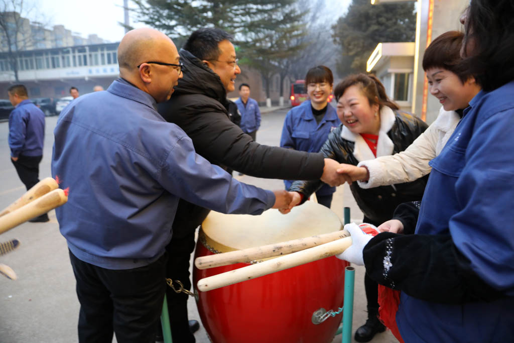 2月18日(正月初九)早上7點40分左右,星火機(jī)床集團(tuán)公司大門口鑼鼓喧天、鞭炮齊鳴、煙花四射。集團(tuán)公司領(lǐng)導(dǎo)班子蔣保權(quán)一行伴隨著歡快的音樂旋律和絢麗的煙花,隊列迎接每一位上班的職工,向廣大職工如期返回公司工作表示誠摯的敬意并為他們送上新春的問候!大家見面之后臉上洋溢著燦爛的笑容并相互拜年問好。