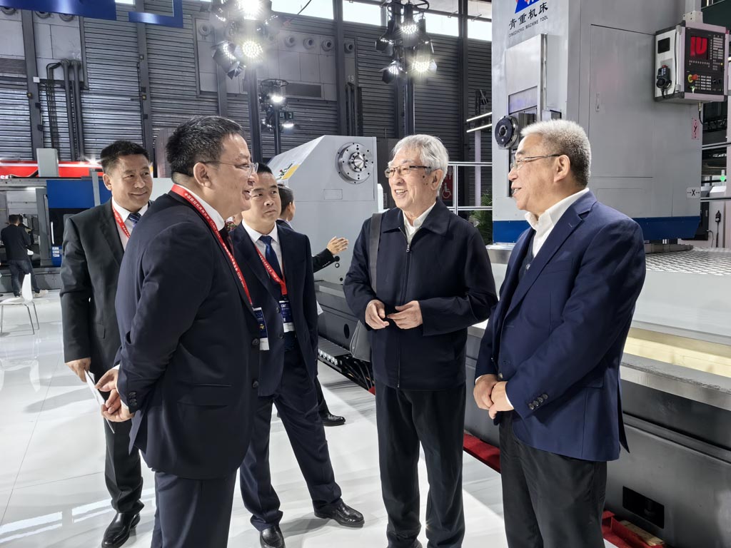 原機床工具協(xié)會會長、現(xiàn)機床工具協(xié)會榮譽會長吳柏林先生蒞臨星火機床展位參觀,與黨委書記、星火機床集團公司董事長蔣保權(quán)、星火青重公司董事長羅春剛親切交談并合影留念。