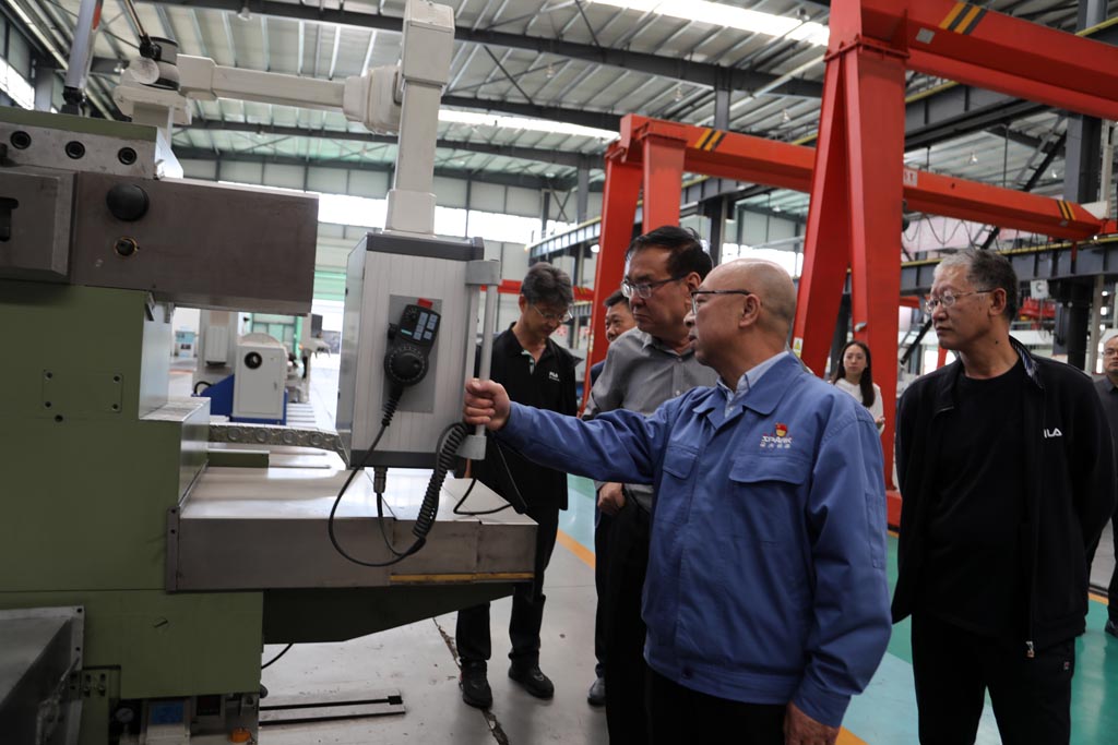 劉學(xué)軍一行在蔣俊陪同下先后參觀了工業(yè)園青重生產(chǎn)加工現(xiàn)場(chǎng)、機(jī)床裝配現(xiàn)場(chǎng)及噴漆車(chē)間,查看了機(jī)床加工及裝配工藝流程,參觀了公司自主研發(fā)生產(chǎn)并應(yīng)用于不同領(lǐng)域的各型機(jī)床產(chǎn)品。蔣俊向劉學(xué)軍一行詳細(xì)介紹了企業(yè)歷史沿革、發(fā)展歷程、科技創(chuàng)新、產(chǎn)品研發(fā)、項(xiàng)目建設(shè)、人才培養(yǎng)及公司發(fā)展規(guī)劃等情況。