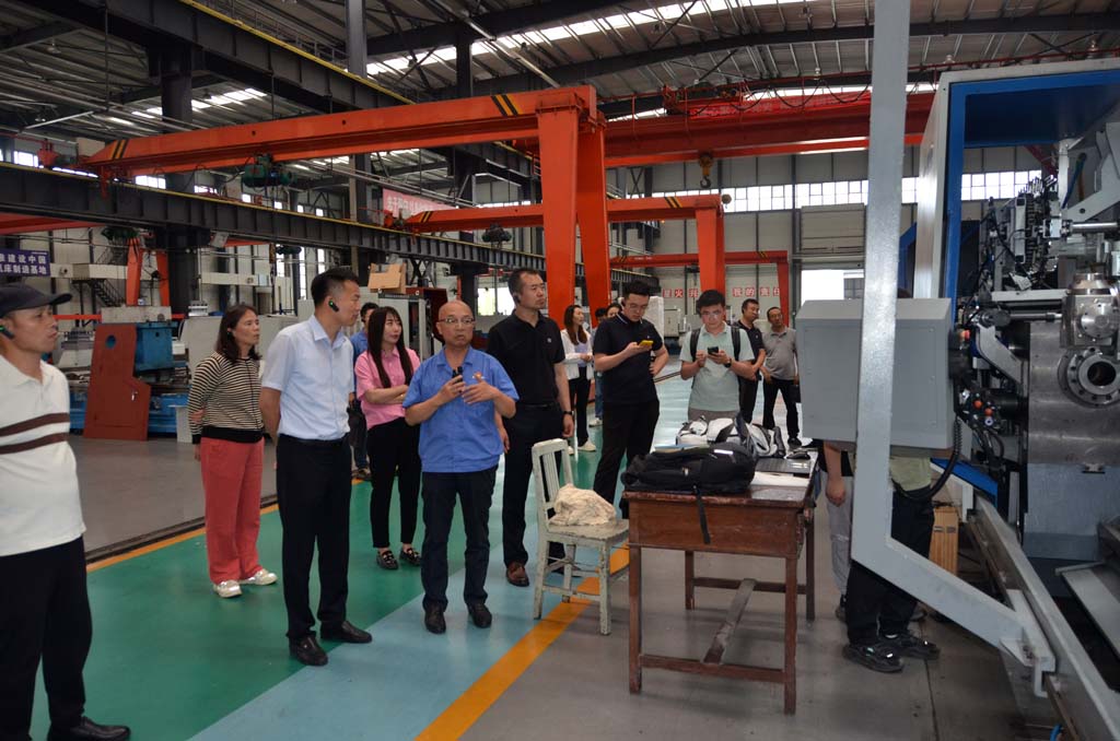 黨委副書記、星火機(jī)床集團(tuán)公司副總經(jīng)理蔣俊及行政綜合部負(fù)責(zé)人陪同參觀生產(chǎn)現(xiàn)場。