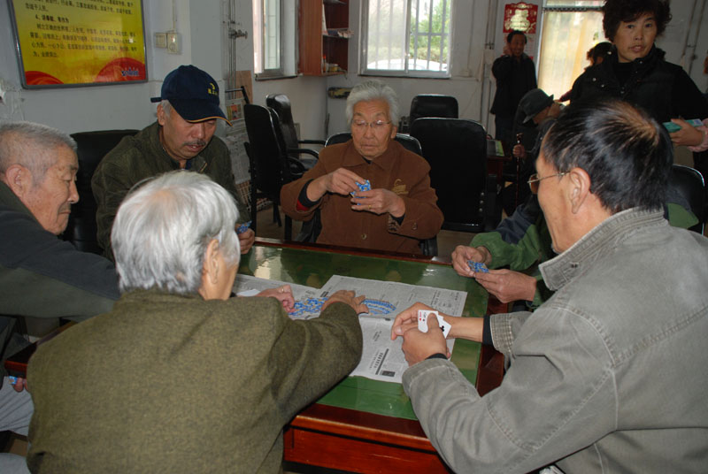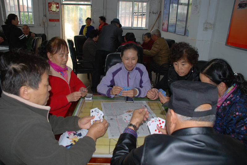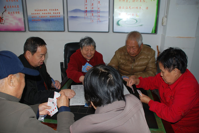 星火機(jī)床公司退休支部書記石文敏宣布比賽規(guī)則后,老職工三人一組,開始比賽。比賽一局定輸贏,凡是參加活動的,都有紀(jì)念品?;顒蝇F(xiàn)場,人來人往,非常熱鬧,四張比賽桌座無虛席,圍觀的人比參賽的人還要多,比賽現(xiàn)場不時傳來歡快的笑聲。