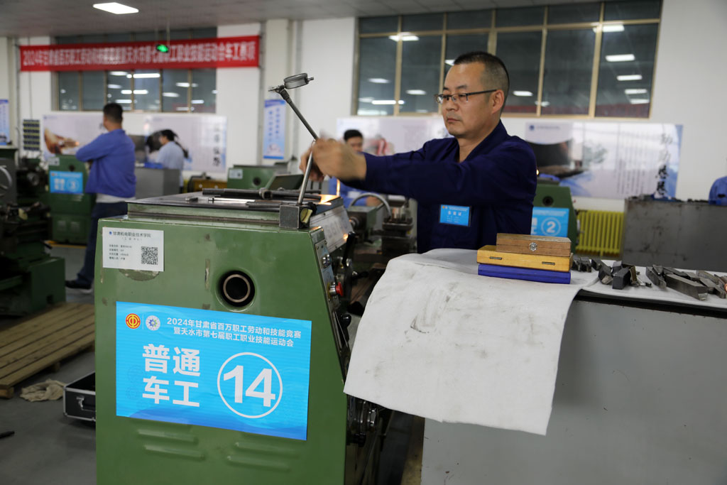 9月27日,2024年甘肅省百萬職工勞動(dòng)和技能競(jìng)賽暨天水市第七屆職工職業(yè)技能運(yùn)動(dòng)會(huì)“電工、車工、焊工、鉗工、銑工”市級(jí)決賽開幕式在甘肅機(jī)電職業(yè)技術(shù)學(xué)院舉行。省總工會(huì)二級(jí)巡視員毛喬,市人大常委會(huì)副主任、市總工會(huì)主席申君明,副市長(zhǎng)張興軍,市政協(xié)副主席馬筱寧,甘肅工人報(bào)社總編劉靜,甘肅機(jī)電職業(yè)技術(shù)學(xué)院黨委副書記、院長(zhǎng)劉乃君等領(lǐng)導(dǎo)出席開幕式。甘肅星火智能數(shù)控機(jī)床有限公司黨委副書記、工會(huì)主席蔣俊帶領(lǐng)公司參賽選手參加活動(dòng)。