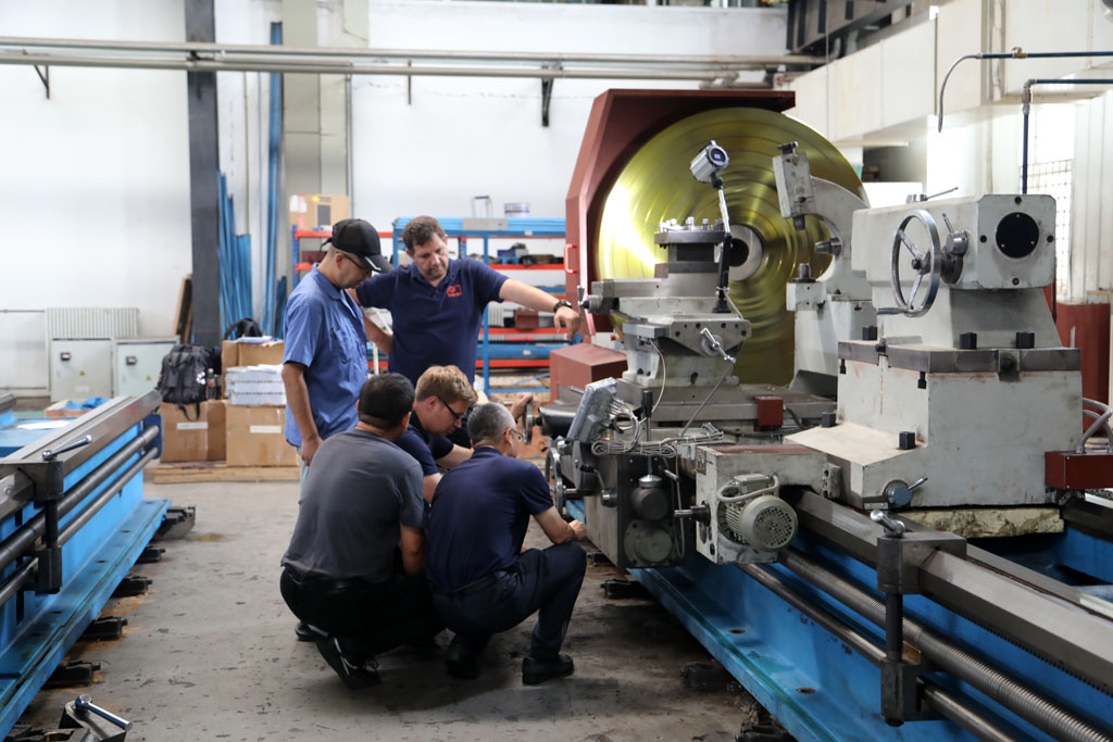 9月11日下午,羅馬尼亞客商一行2人在德國克努特公司銷售經(jīng)理的陪同下來到甘肅星火智能數(shù)控機床有限公司驗收兩臺CW61160/8m臥式車床產(chǎn)品。甘肅星火智能數(shù)控機床有限公司銷售部副部長高瑞東及相關(guān)技術(shù)人員接待客商一行并陪同驗收產(chǎn)品。