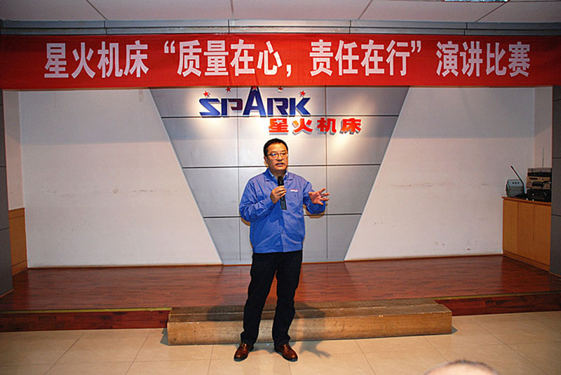 演講結(jié)束后,集團公司董事長蔣保權(quán)講話。他首先通過自己的或親身經(jīng)歷、或親眼所見的國外企和公司員工中發(fā)生的故事,說明了不同的人、不同的企業(yè)對質(zhì)量的不同態(tài)度,以及最終的不同結(jié)果。蔣保權(quán)指出,質(zhì)量在哪里?質(zhì)量就在我們每個人的行動中,在每個人的態(tài)度上?!拔覀冎挥凶龅母?,我們別無退路”。組織演講比賽,就是要喚醒大家的質(zhì)量意識,不能只說,而且要做,要體現(xiàn)在行動上。同時要提升大家的表達(dá)能力、溝通能力、組織能力等綜合素質(zhì)。只有每個人都認(rèn)識到自己肩上的責(zé)任,都把自己的工作做好,明天燦爛的陽光就是屬于你的,就是屬于星火機床的。相信只有大家共同努力,星火的明天一定是美好的。(石廣謀)