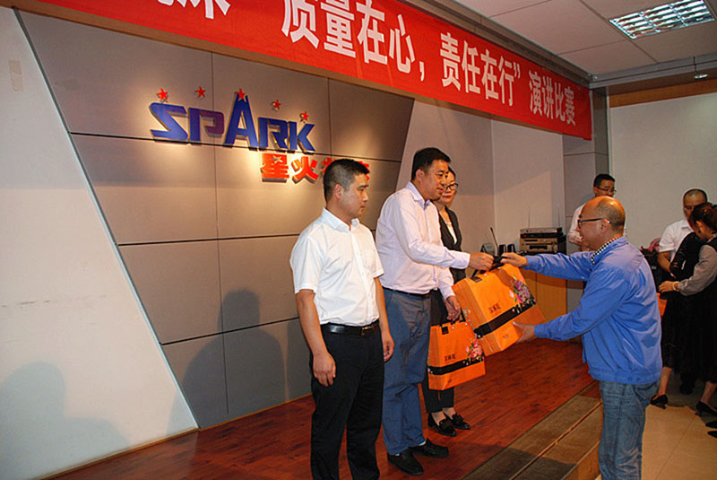 當(dāng)晚7點開始的決賽, 2人因故沒有參加比賽,13名選手在經(jīng)過命題演講和即興演講比賽后,分茯一、二、三等獎及優(yōu)勝獎。同時,經(jīng)過組織評選,20名同志分獲撰稿一、二、三等獎和優(yōu)秀獎。至此,星火機床公司“質(zhì)量在心 責(zé)任在行”演講比賽活動圓滿落幕。