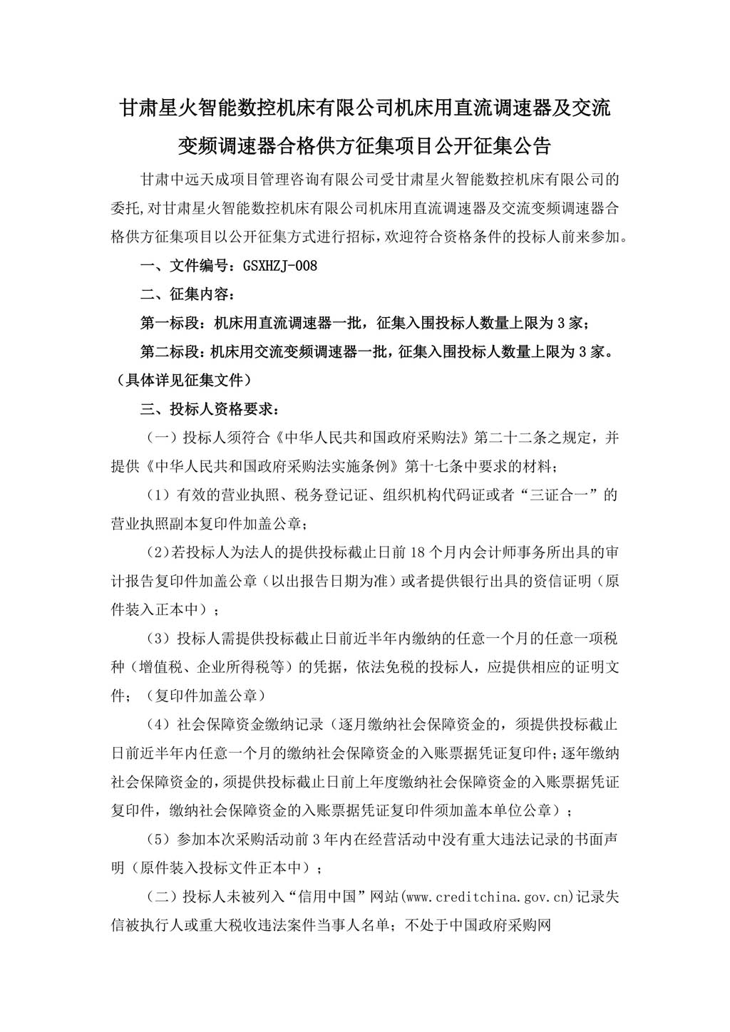 甘肅星火智能數(shù)控機床有限公司機床用直流調(diào)速器及交流變頻調(diào)速器合格供方征集項目公開征集公告